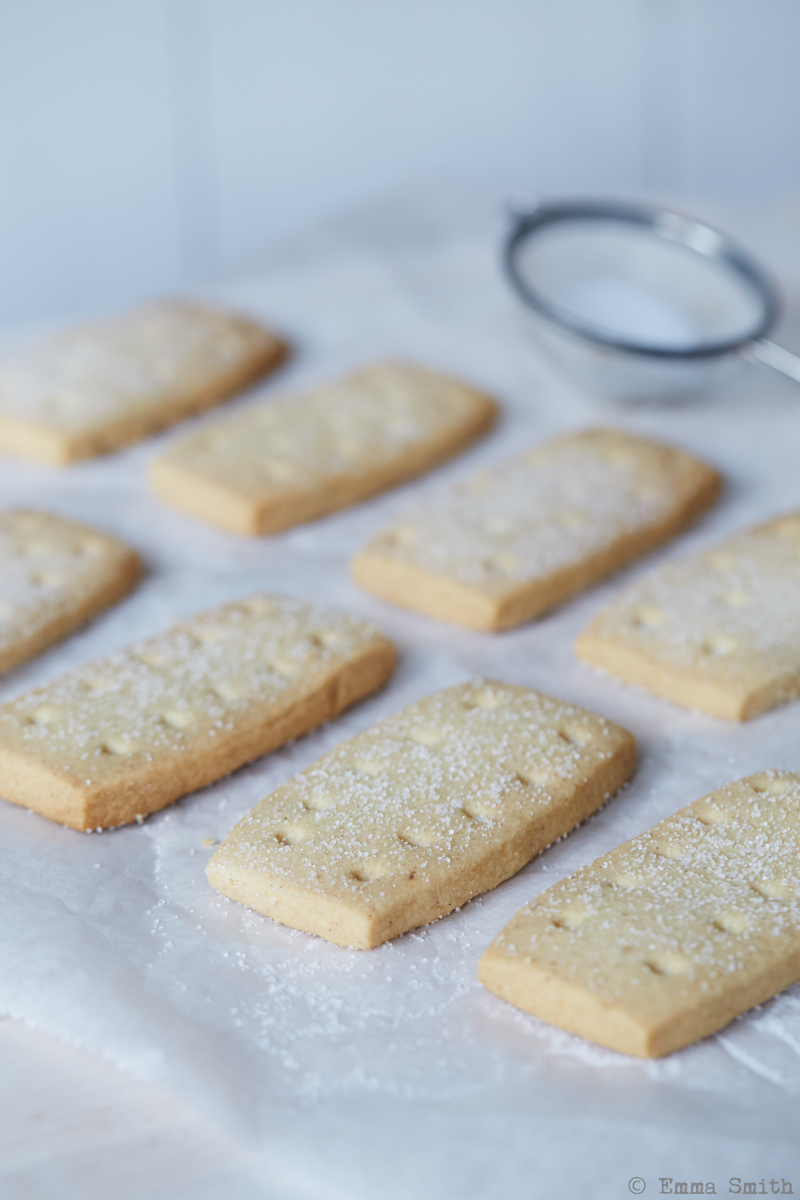 Turn the tray around and cook for a further 10 minutes until the shortbread are a pale golden colour then remove from the oven and lightly dust with granulated sugar before leaving to cool on the tray.